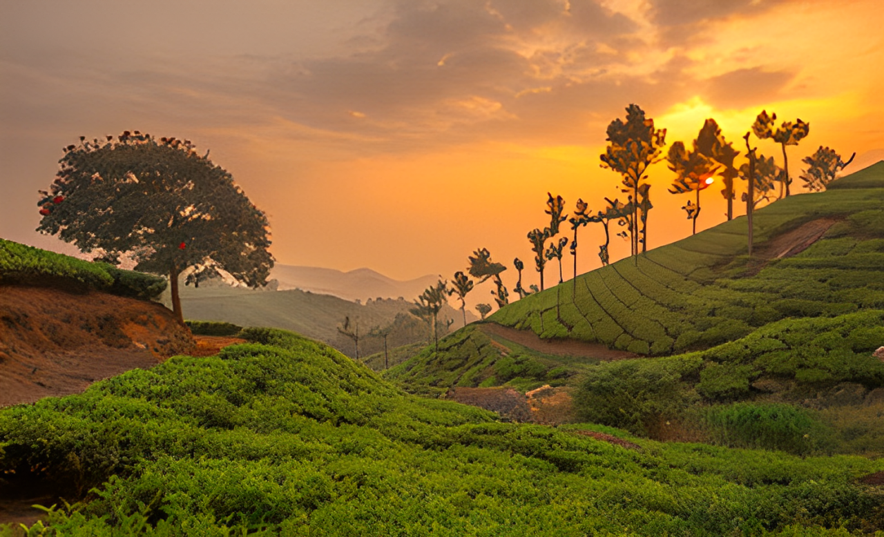 Munnar is a picturesque hill station located in the Western Ghats of Kerala, India. It is renowned for its lush green landscapes, rolling tea plantations, and pleasant climate, making it one of the most popular tourist destinations in Kerala. Situated at an altitude of 1,600 meters above sea level, Munnar offers a perfect retreat for those looking to escape the heat of the plains and immerse themselves in the beauty of nature.Munnar, which means "three rivers" in Malayalam.